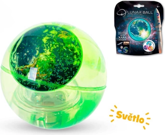 Descoperă distracția cu mingea săritoare NASA, care luminează în mișcare și are sclipici în interior. Datorită motivelor cu Pământul, Luna, stația spațială și racheta, stimulează imaginația copiilor și interesul pentru spațiu. Minge cu diametrul de 5 cm, ambalată într-un săculeț opac, astfel încât motivul concret este mereu o surpriză. Potrivită pentru copii de la 6 ani, alimentată de 3× baterii AG10 incluse în pachet.