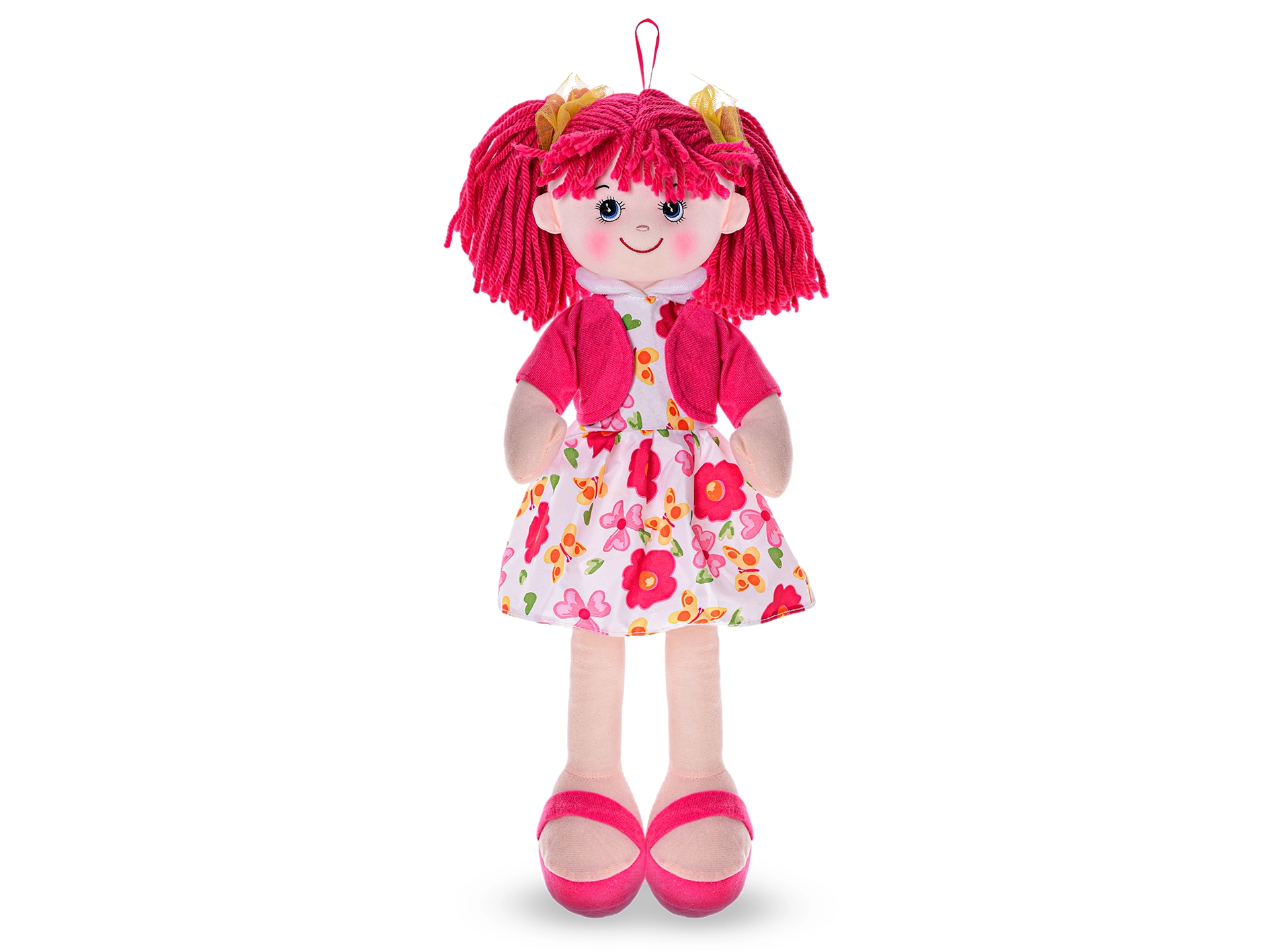 Păpușa este confecționată din textil moale, plăcut la atingere și sigur pentru bebeluși. Datorită hăinuței roșii, atrage atenția de la prima vedere și devine o prietenă îndrăgită pentru cărucior și pătuț. Bateriile (3× AG13) sunt deja incluse, astfel încât păpușa este pregătită pentru utilizare imediată.