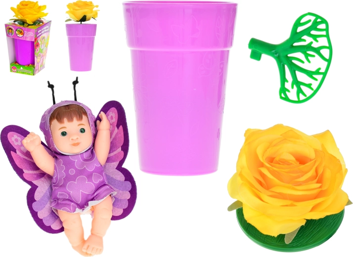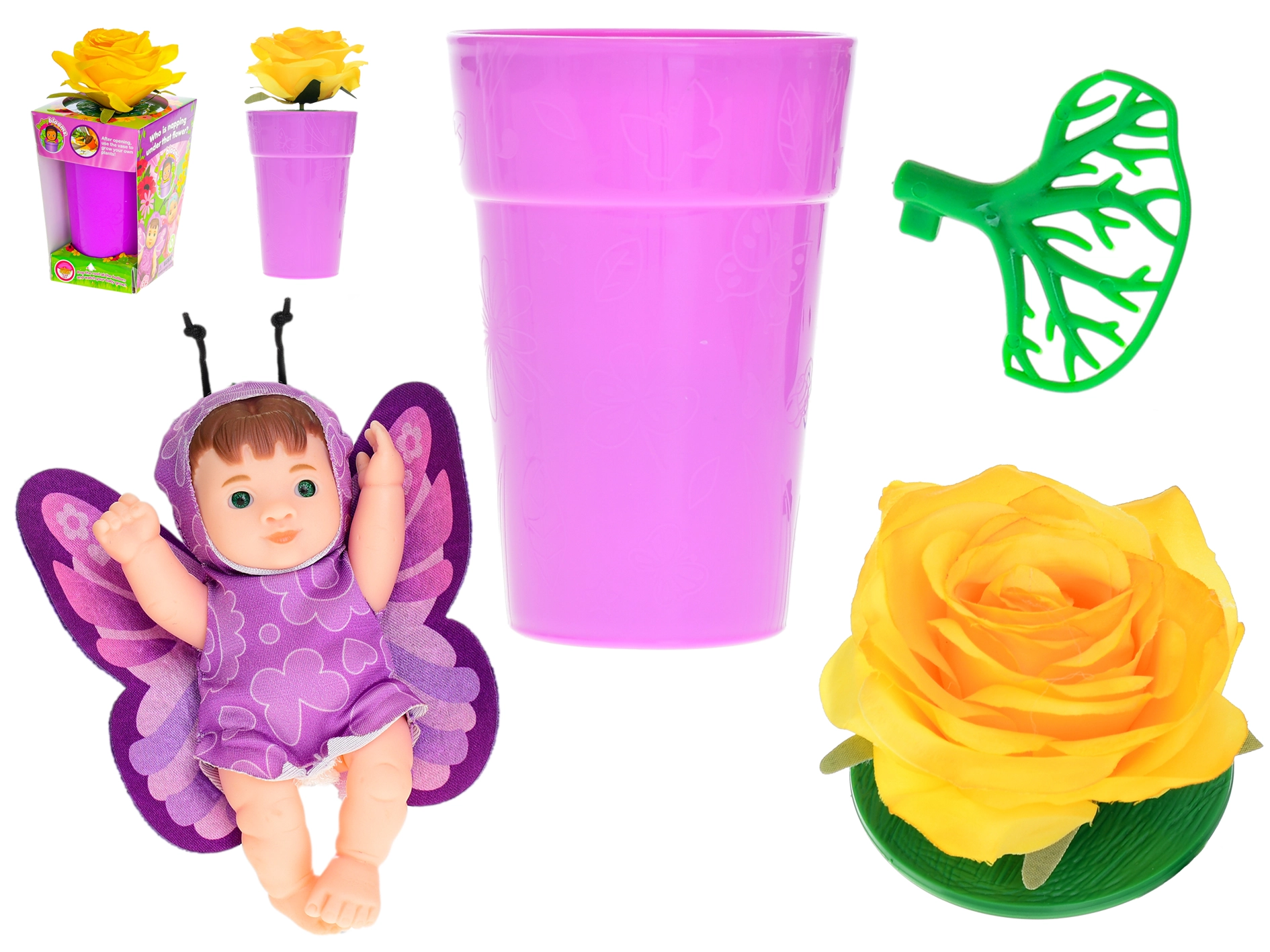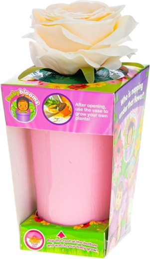 Descoperă farmecul păpușii de colecție Bebeluș Babyblooms ascunsă într-un ghiveci decorativ. Înăuntru găsești o păpușă adorabilă de 12,5 cm, o brățară decorativă și o floare – cadoul ideal pentru copii de la 3 ani. Ghiveciul se deschide cu ajutorul unei cheițe pe partea de jos pentru joacă repetată, oferă 12 variante diferite de nume și culori și înfrumusețează camera copilului.