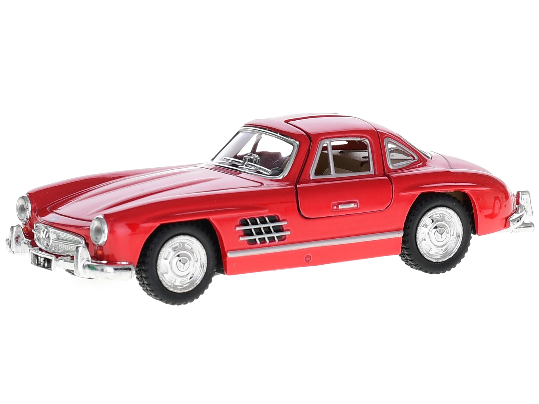 Modelul metalic Mercedes‑Benz 300 SL din 1954 redă fidel designul iconic cu ușile tip „gullwing”. Datorită detaliilor fine și materialelor de calitate, are un aspect realist și este în același timp rezistent. Mecanismul practic pull‑back asigură distracție și mișcare dinamică după tragerea înapoi.