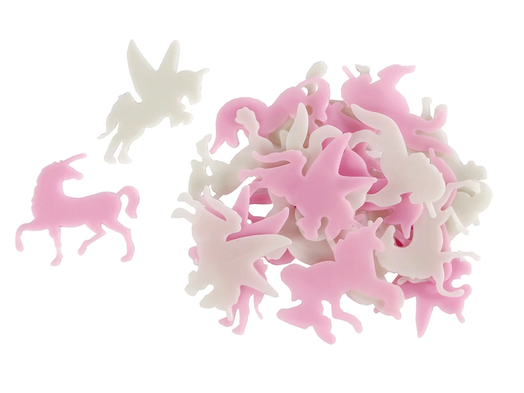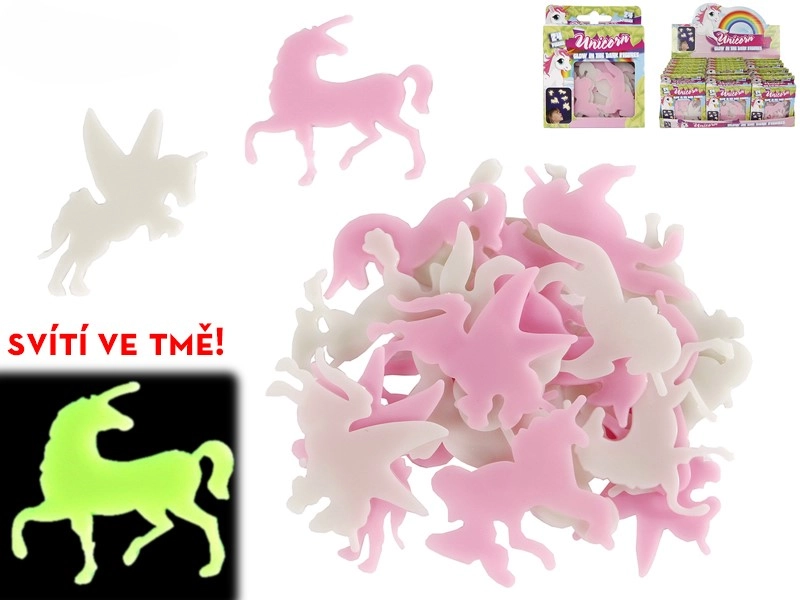 Creați o atmosferă magică în camera copiilor cu setul de autocolante fosforescente în formă de unicorni. Pachetul conține 24 de autocolante din plastic, care se încarcă la lumină în timpul zilei și strălucesc ușor în întuneric. Sunt ușoare, sigure și ușor de îndepărtat, astfel încât le puteți muta fără griji. Datorită efectului fosforescent oferă efecte luminoase plăcute pentru un somn liniștit.