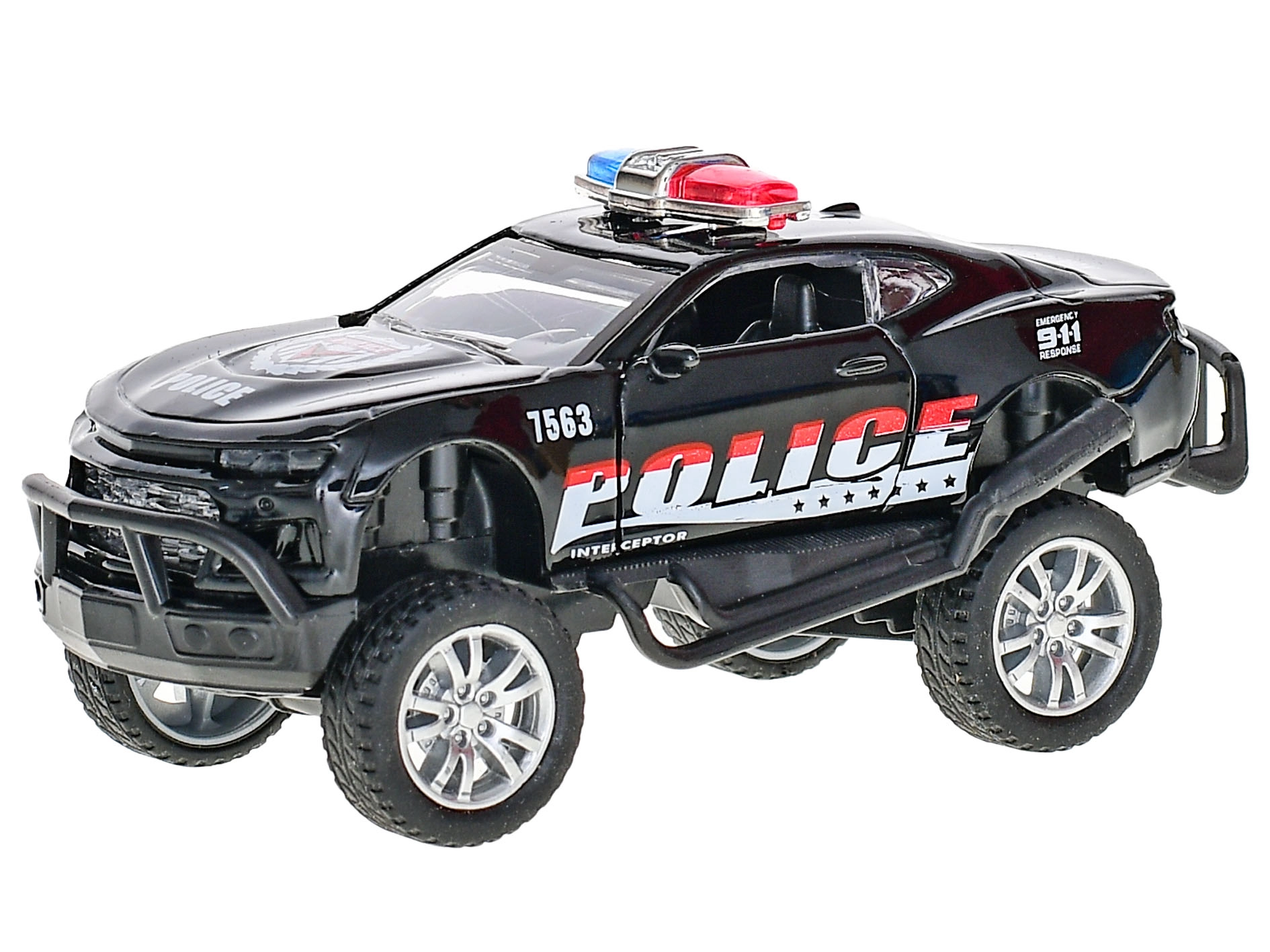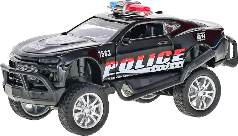 Mașinuța de poliție realistă este concepută pentru joacă zilnică. Caroseria robustă din metal este completată de piese din plastic rezistent, astfel încât jucăria face față și utilizării mai solicitante. Datorită mecanismului de întoarcere (pull-back) este suficient să o tragi înapoi și să urmărești cursa sprintenă înainte, care stimulează imaginația copiilor și dezvoltă motricitatea fină.