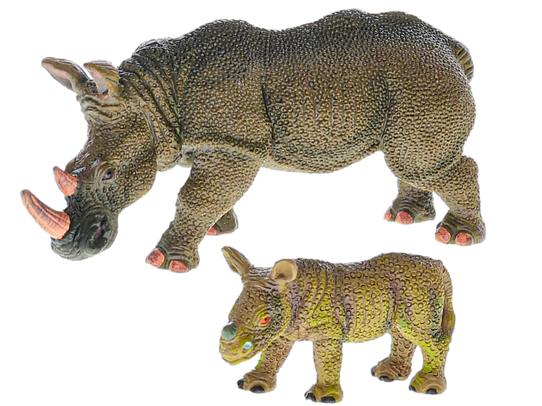 - Execuție realistă – detalii fidele ale rinocerului adult și ale puiului