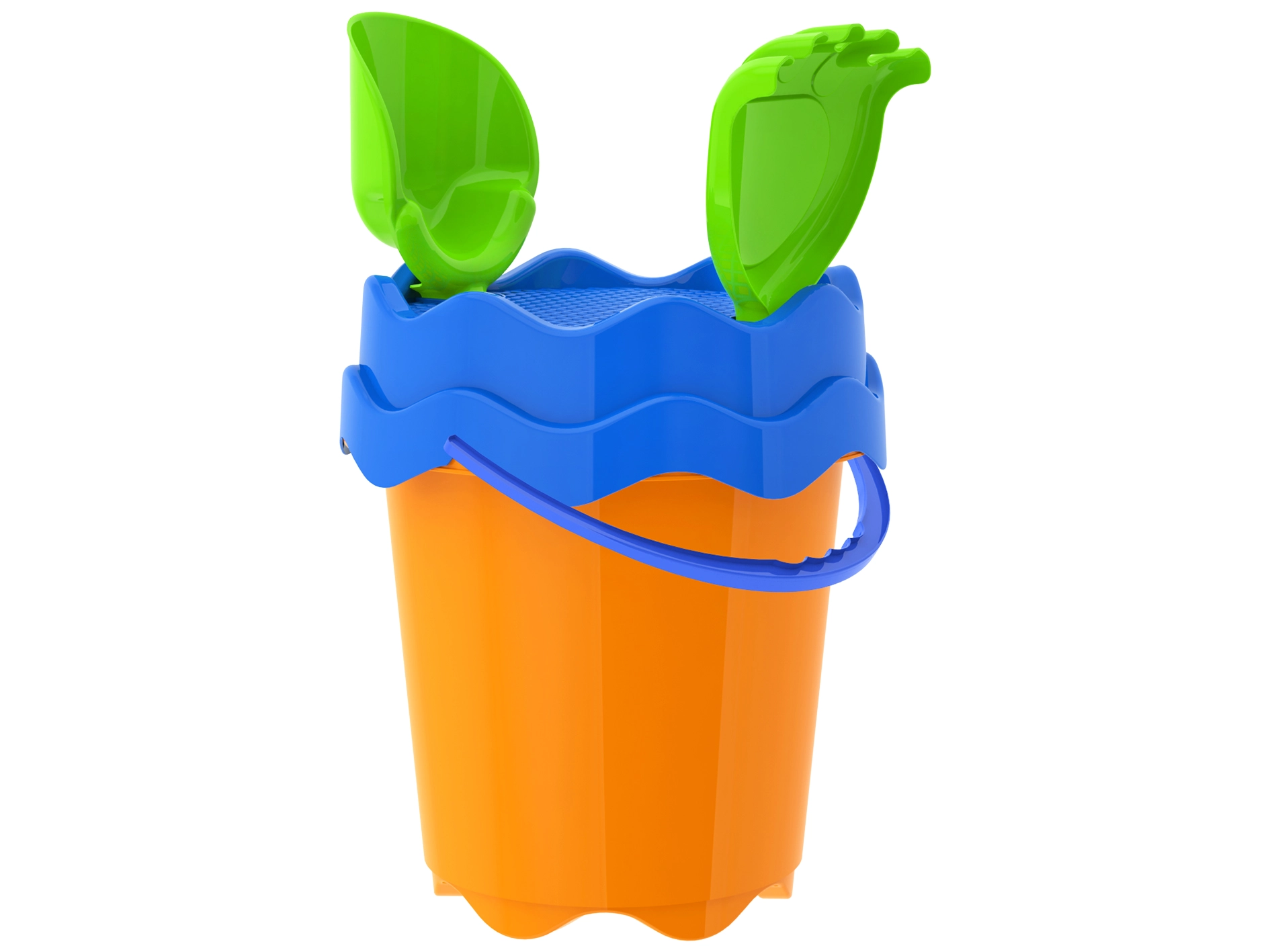 Setul include tot ce este necesar pentru distracție în aer liber – de la găleata cu diametrul de 17 cm până la sita practică. Culoarea portocalie atrăgătoare captează atenția și motivează la joacă prelungită. Ambalarea în plasă facilitează uscarea, transportul și depozitarea jucăriilor după joacă.