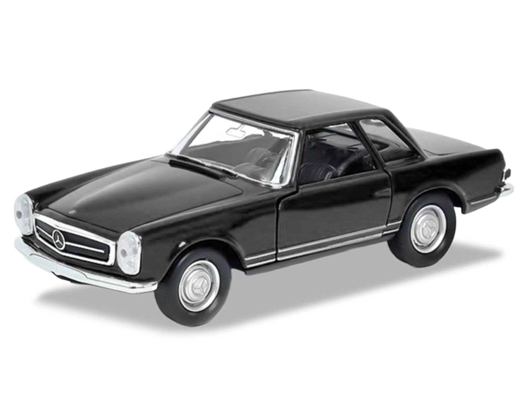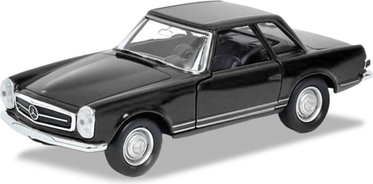 Model metalic detaliat al legendarului MERCEDES-BENZ 230 SL (1963) de la Welly, la scară 1:34–39, impresionează prin execuția realistă, cu uși laterale deschise și mecanism de întoarcere (pull-back). Combinația de metal și plastic de calitate asigură durabilitate și un aspect atrăgător. Lungime 12 cm, ideal pentru colecționari și copii de la 3 ani, disponibil în culorile roșu, alb și negru.