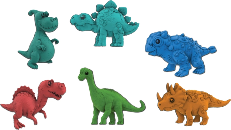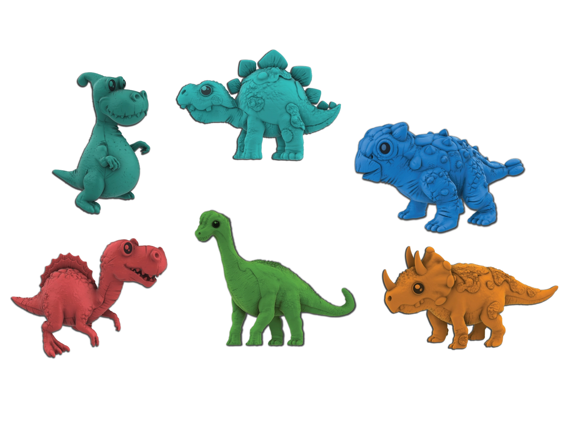Ouăle sunt disponibile în două culori – roșu și portocaliu – și ascund la întâmplare unul dintre opt tipuri de dinozauri: T‑Rex, Brontosaurus, Stegosaurus, Triceratops, Parasaurolophus, Ankylosaurus, Spinosaurus sau Plesiosaurus. Culoarea și specia exacte nu pot fi alese în avans, ceea ce garantează elementul surpriză la fiecare achiziție.