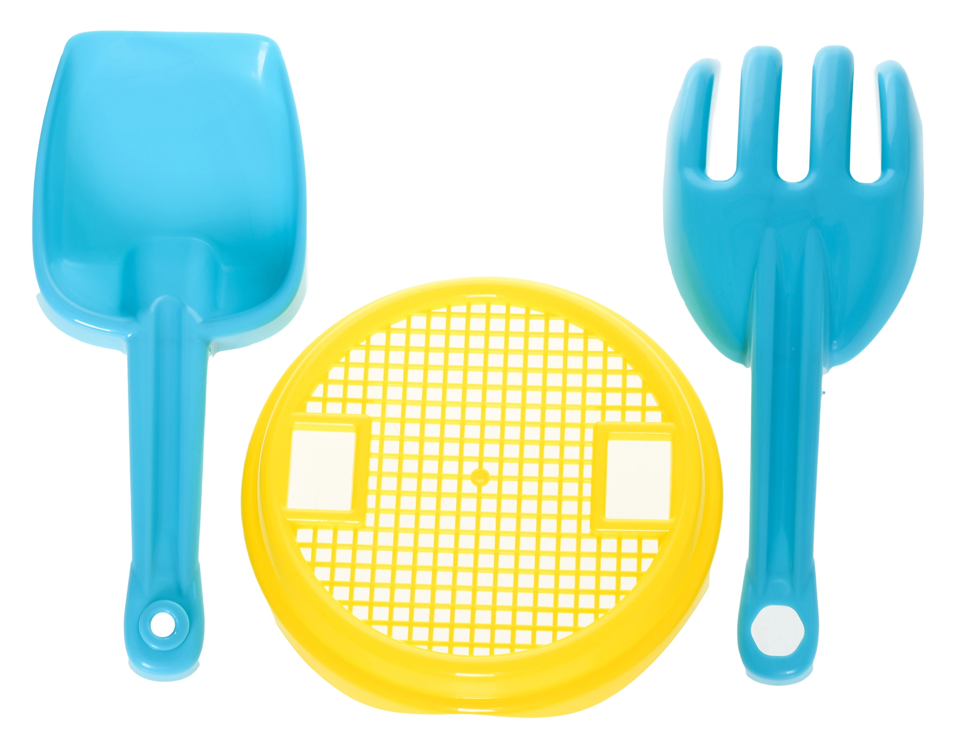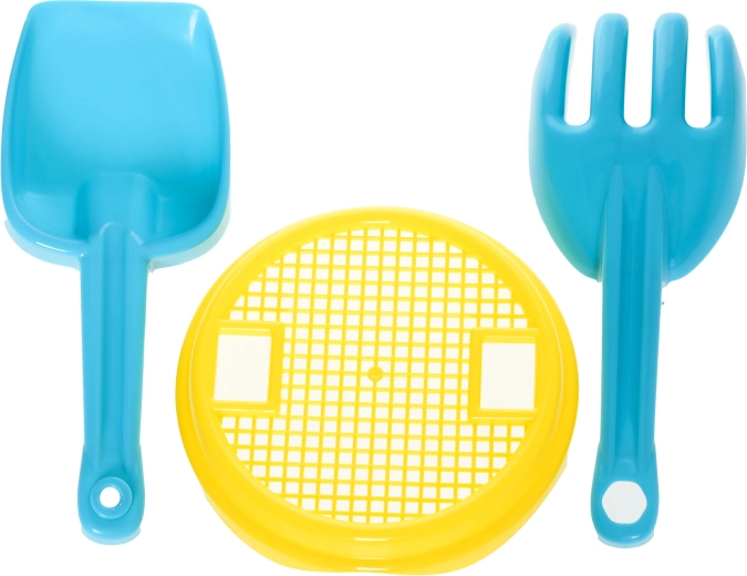 - Echipare completă cu 5 piese: găleată, sită, lopățică, greblă și formă