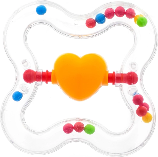 Zornăitoarea cu inimioară rotativă le aduce copiilor bucuria descoperirii sunetelor și mișcărilor. Datorită formei ergonomice se ține bine în mână, iar inimioara se poate roti ușor – ceea ce stimulează curiozitatea, coordonarea mână–ochi și dezvoltarea simțului tactil. Dimensiunile compacte o fac un companion practic pentru călătorii și pentru căruț.