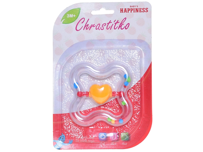 - Element distractiv – inimioară rotativă și sunet plăcut de zornăit care menține atenția copilului.