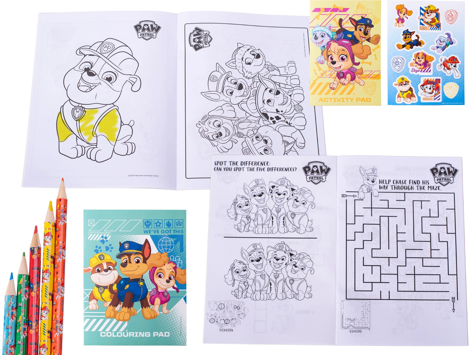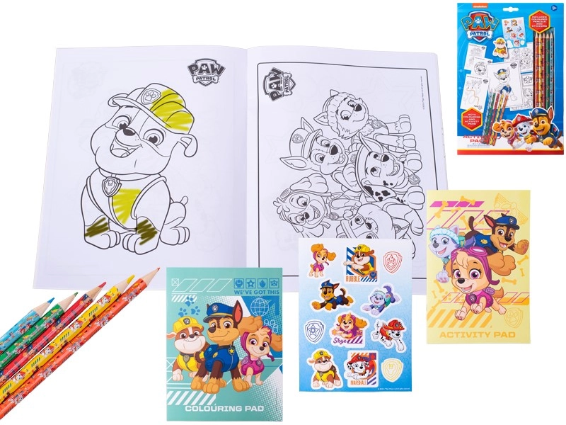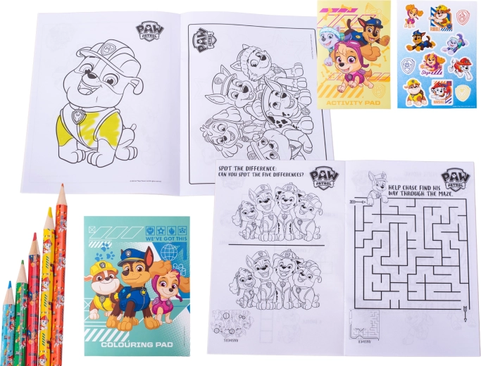 Set distractiv pentru micii fani PAW PATROL, cu cărți de colorat și autocolante cu eroii preferați. Susține creativitatea, motricitatea fină și îi distrează pe copii acasă sau în călătorii. Fabricat din hârtie de calitate, potrivit pentru copii de la 3 ani.