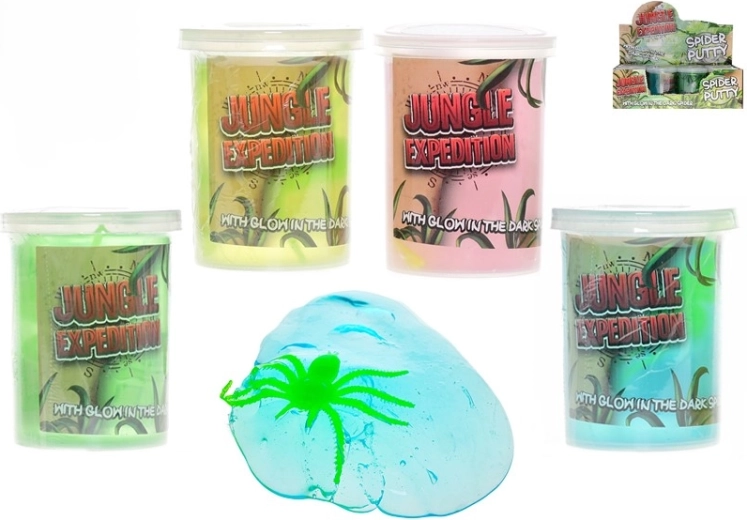 Slime-ul luminos Jungle Expedition cu păianjen este o alegere grozavă pentru micii exploratori. În interiorul pastei colorate se ascunde un mic păianjen care, după expunere la lumină, strălucește în întuneric și adaugă jocului o atmosferă misterioasă. Datorită paharului transparent compact, slime-ul este ușor de transportat și mereu gata de joacă acasă sau în călătorii.