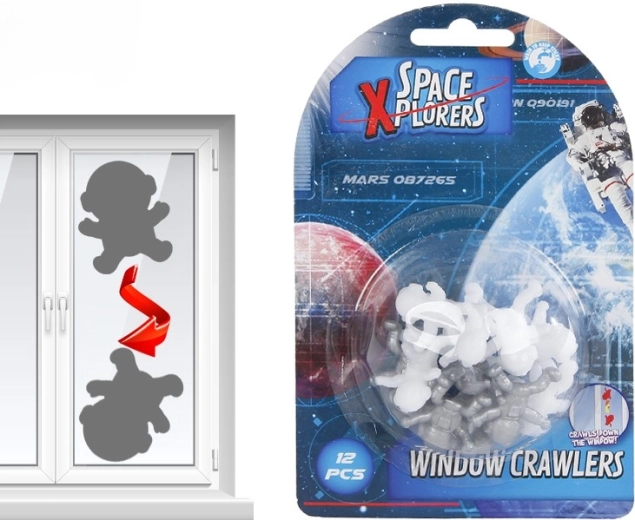 Urmărește cum micii astronauți pornesc în „misiunea” lor pe sticlă, ferestre sau oglinzi. Datorită finisajului ușor adeziv, aderă delicat la suprafețele netede și coboară treptat în jos – fără baterii și fără operare complicată. Distracție care dezvoltă fantezia și, în același timp, nu face mizerie.