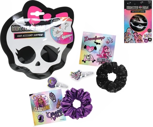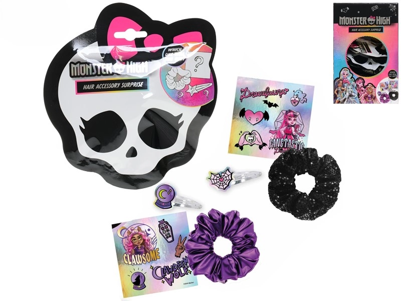 Descoperă lumea jucăușă a coafurilor cu setul tematic de accesorii pentru păr MONSTER HIGH. Copiii pot combina cu ușurință diverse clame, elastice și decorațiuni, își pot exprima personalitatea și pot oferi coafurii un stil unic, inspirat de personajele preferate. Setul este ușor, ușor de transportat și ideal pentru acasă, la școală și în excursii.