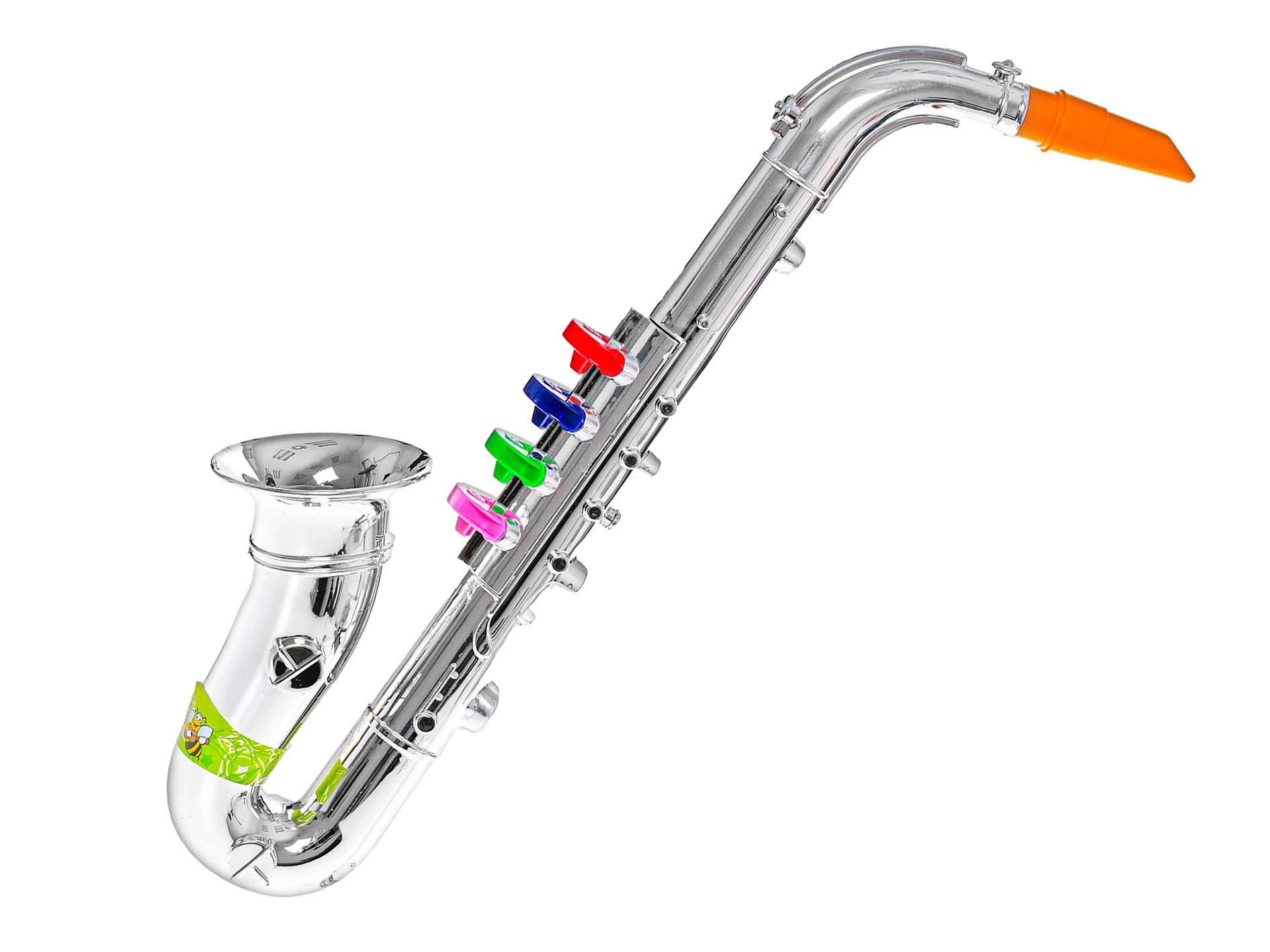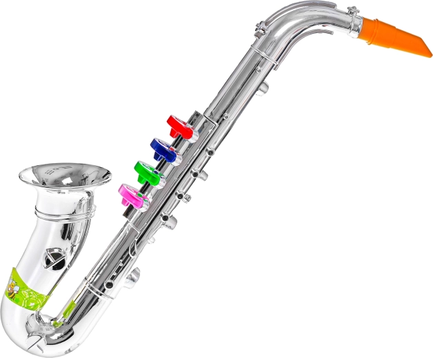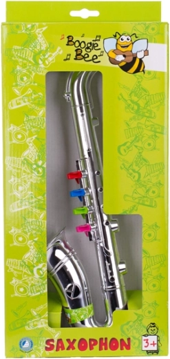 Descoperiți instrumentul muzical ideal pentru micii muzicanți: saxofon pentru copii cu lungimea de 38 cm. Este ușor, manevrabil și, prin strălucirea sa argintie și cele 4 clape colorate, atrage imediat copiii. Susține auzul muzical, simțul ritmic și motricitatea fină, fiind o alegere excelentă pentru copiii de la 3 ani. Se livrează ambalat în cutie – pregătit pentru a fi dăruit.