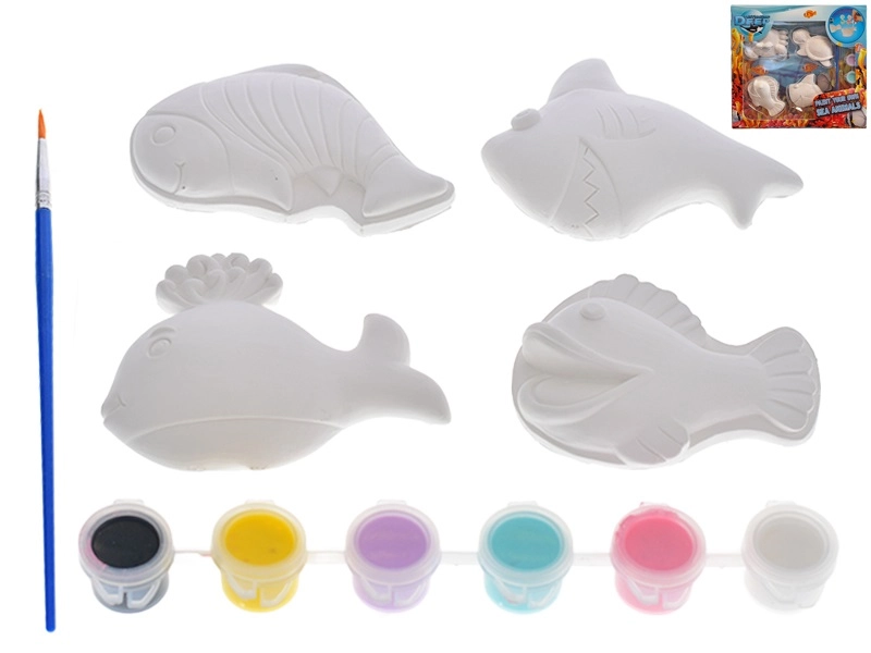 - Figurine ceramice cu animale marine, vopsele, pensulă