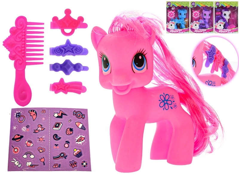 Aprinde imaginația copiilor cu o figurină adorabilă de unicorn de 11,5 cm. Acest unicorn stând în picioare este disponibil în patru culori (roz, alb, albastru, mov) și include accesorii pentru decorare, care susțin creativitatea și motricitatea fină. Fabricat din plastic de calitate, sigur, ideal pentru joacă acasă și în călătorii, potrivit de la 3 ani.