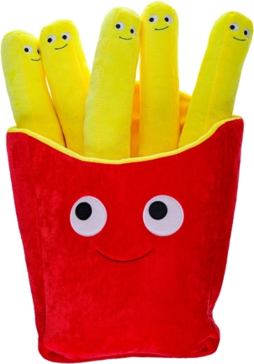 Aduceți-le copiilor un companion care încântă de la prima atingere. Cartofii prăjiți din pluș cu față impresionează prin aspectul original și materialul moale, plăcut la atingere chiar și pentru cei mai mici. Datorită dimensiunilor compacte, jucăria este grozavă pentru pătuț, cărucior și călătorii.