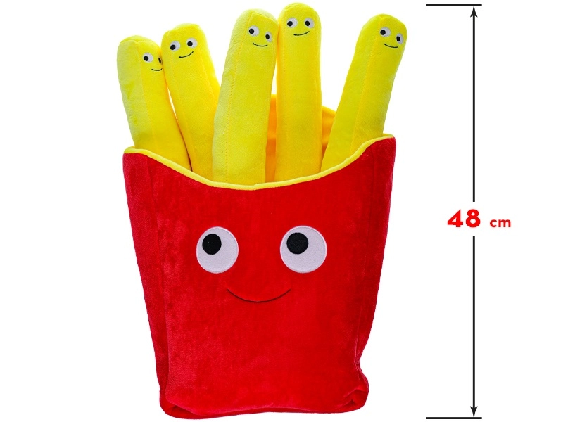O jucărie de pluș adorabilă în formă de cartofi prăjiți, cu un chip zâmbitor, aduce multă bucurie și confort copiilor încă de la naștere. Datorită lungimii de 48 cm și plușului foarte moale, este ideală pentru alint și joacă. Construcția ușoară asigură transport facil acasă, în cărucior sau în călătorii, în timp ce designul vesel stimulează imaginația și creativitatea copiilor.