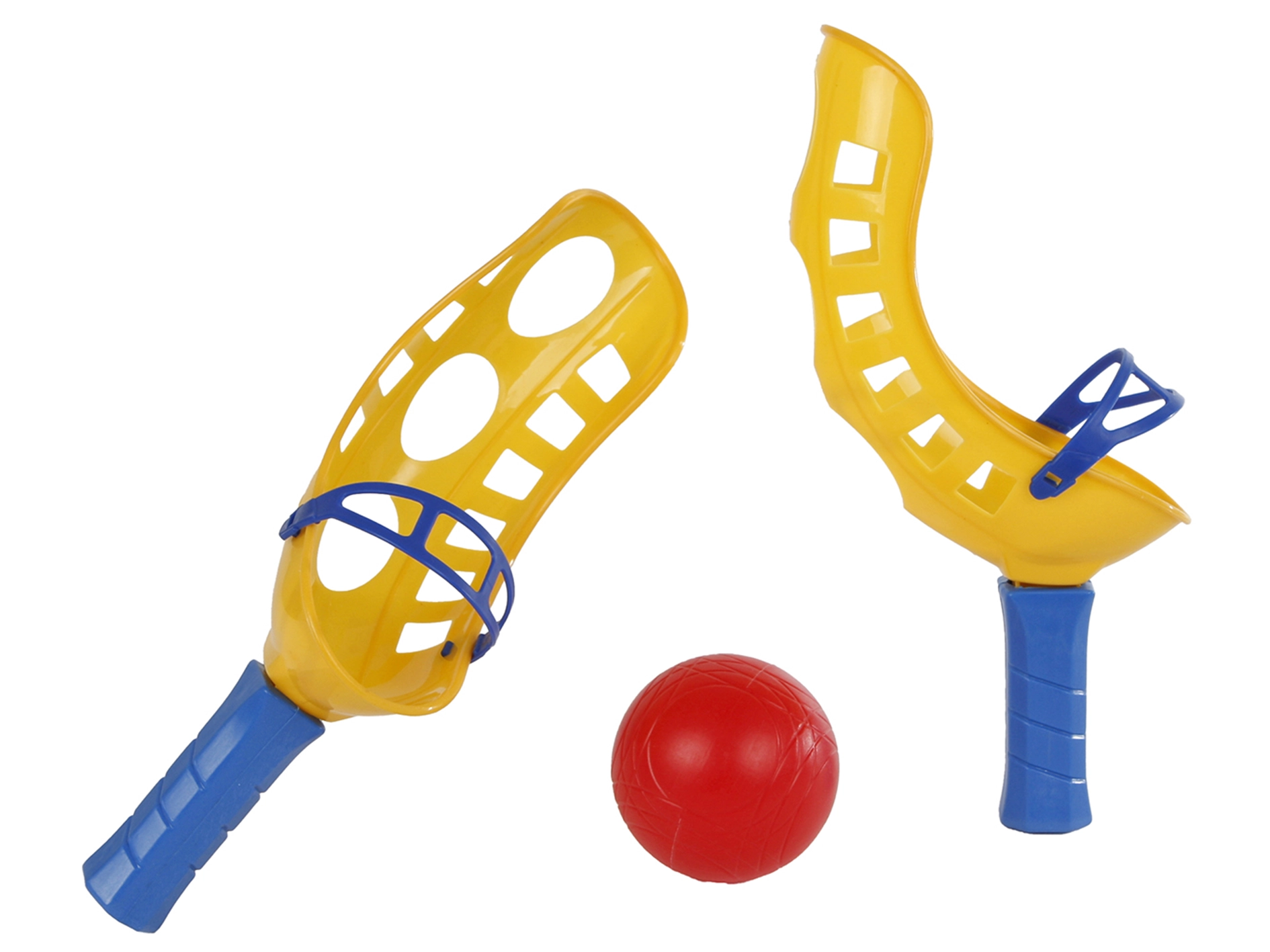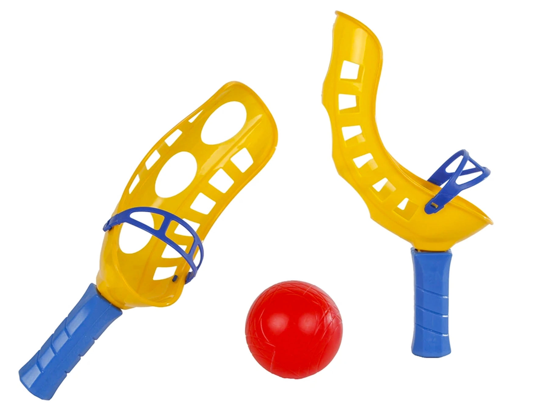 Datorită plasticului solid și designului perforat al lansatoarelor, mingea se controlează bine chiar și pe vânt, iar jocul este potrivit pentru diferite medii – de la grădină și parc până la plajă. Ambalajul compact în plasă vă asigură că veți lua jocul cu voi oriunde.