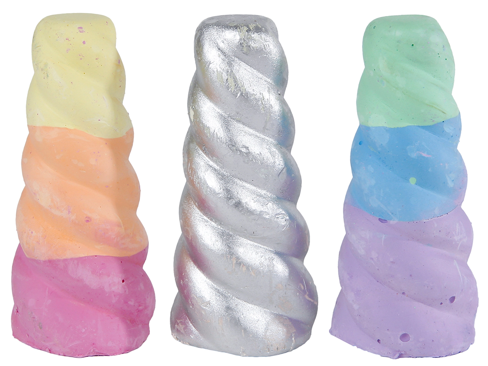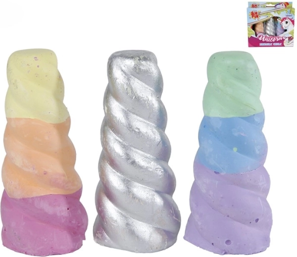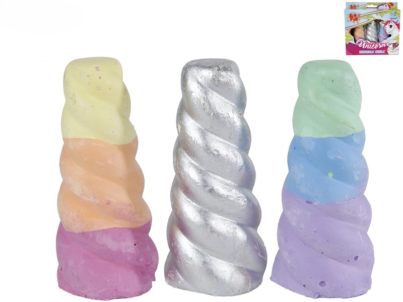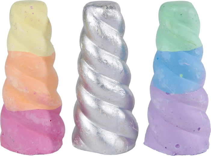 Descoperiți bucuria desenului cu cretele originale în formă de corn de unicorn. Datorită lungimii compacte de 8 cm și prinderii plăcute, copiii se vor bucura să deseneze pe trotuare, terase și pe tablele școlare. Culorile intense le susțin imaginația și dezvoltarea motricității fine.