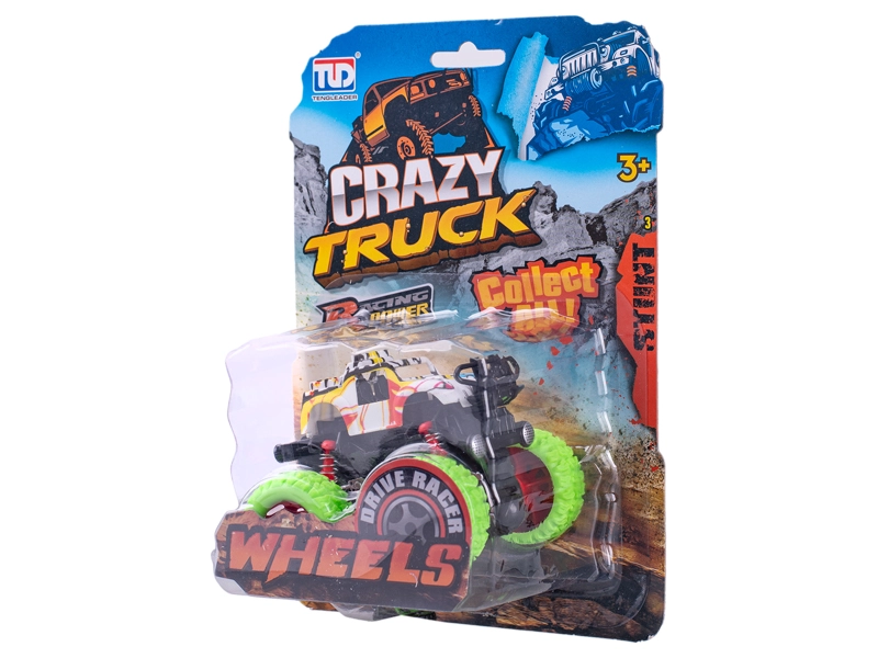 Bucură-te de o cursă plină de acțiune cu monster truckul Crazy Truck – o mașinuță compactă cu mecanism de inerție, lungime 9 cm, cu design graffiti expresiv și roți mari. Datorită mecanismului de inerție, este suficient să tragi mașinuța de câteva ori înapoi și să o eliberezi – va porni pe o distanță lungă și va face față chiar și terenului mai dificil. Plasticul rezistent asigură durată de viață îndelungată și distracție grozavă pentru copiii de la 3 ani în sus.