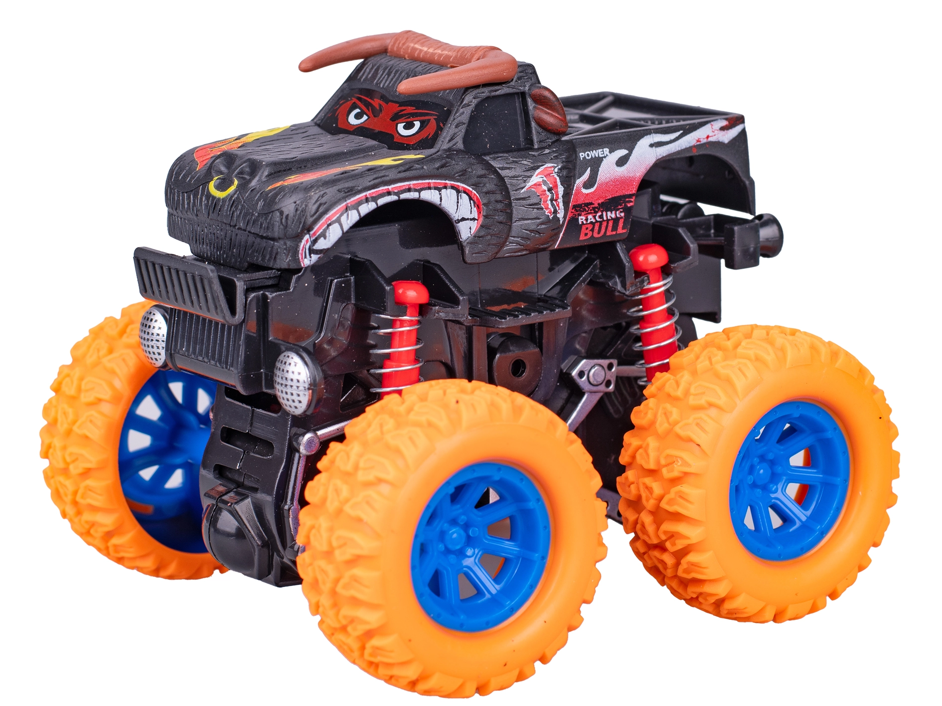 Roțile mari și șasiul înălțat ajută la depășirea terenului denivelat, a covoarelor și a micilor obstacole. Jucăria este livrată pe un blister pentru depozitare ușoară și ambalare cadou. Sunt disponibile patru culori atrăgătoare – verde, roșu, portocaliu și mov – pentru și mai multă distracție la curse.