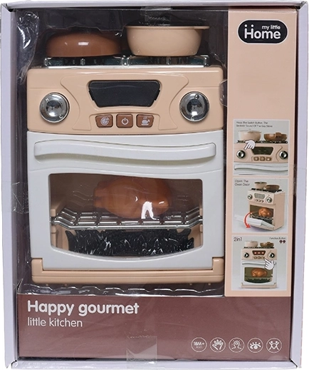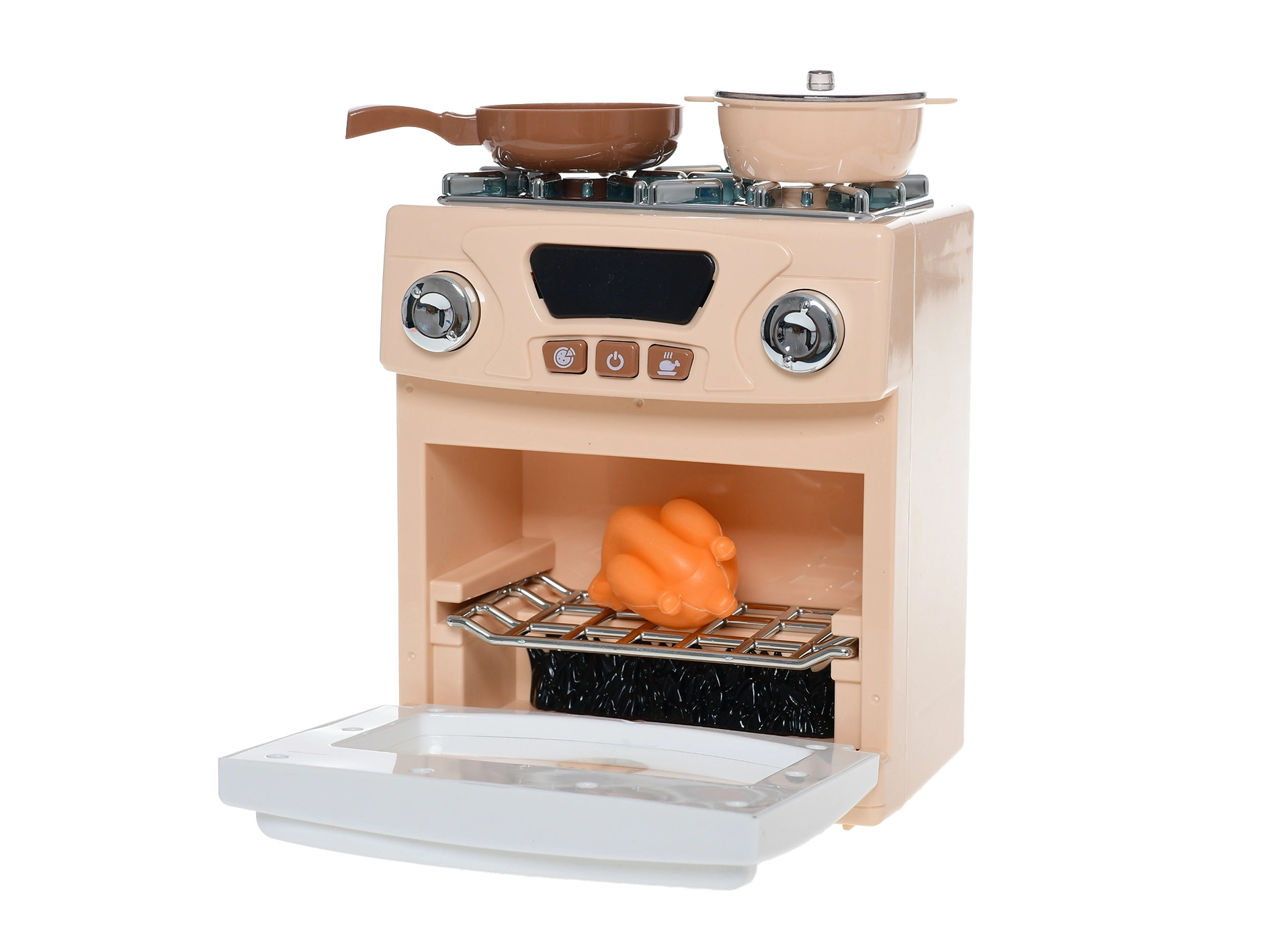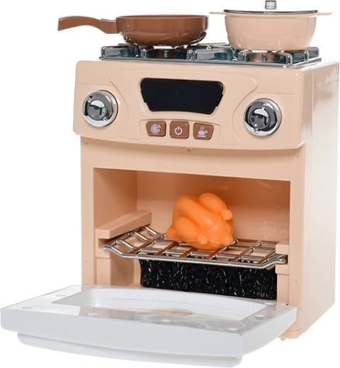 Setul include și o serie de accesorii practice pentru gătit, astfel încât micii bucătari își pot pregăti „specialitățile” imediat după despachetare. Datorită dimensiunii compacte de 18 × 15 × 9 cm, aragazul încape cu ușurință în camera copilului sau în colțul de joacă și poate fi transportat simplu.