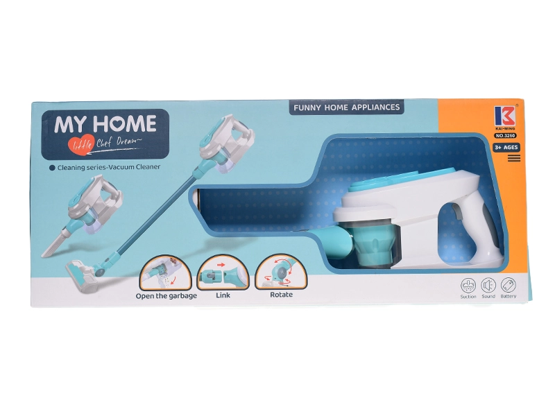 Pachetul include 3 accesorii practice, care extind posibilitățile de joc și permit copiilor să personalizeze aspiratorul. Jucăria este ambalată într-o cutie, astfel că se depozitează ușor și este gata de oferit cadou. Pentru funcționare sunt necesare 4x baterii AA (nu sunt incluse).