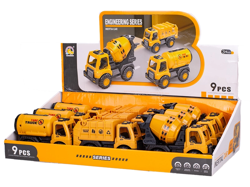 Setul distractiv de vehicule de construcții cu mecanism inerțial va bucura micii constructori de la 3 ani. Conține betonieră, cisternă și camion cu container cu o lungime de 15 cm. Datorită mecanismului inerțial, este suficient să împingi vehiculul și să-l eliberezi – acesta pornește singur înainte. Plasticul durabil asigură o durată lungă de viață și un joc sigur acasă, în grădină sau în nisipar. Ambalajul practic de 9 bucăți în display este ideal pentru colțurile de joacă și pentru grupuri mai mari de copii.