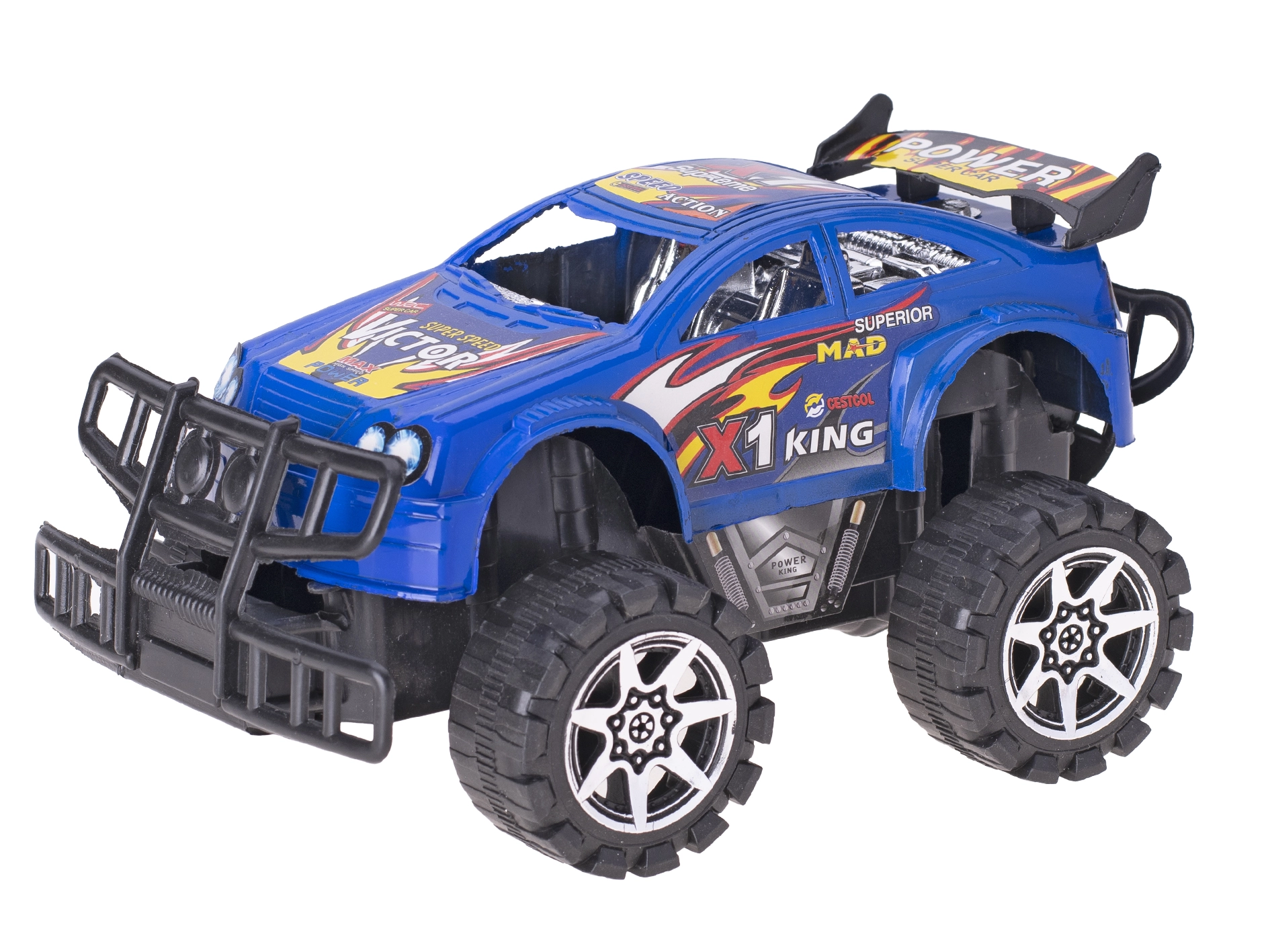 Mașina off-road cu mecanism inerțial oferă copiilor o cursă plină de acțiune pe teren dificil, fără a necesita baterii. Datorită mecanismului inerțial, este suficient un mic impuls, iar vehiculul pornește lin. Construcția rezistentă și detaliile atent realizate asigură o durată de viață îndelungată chiar și la joacă frecventă.
