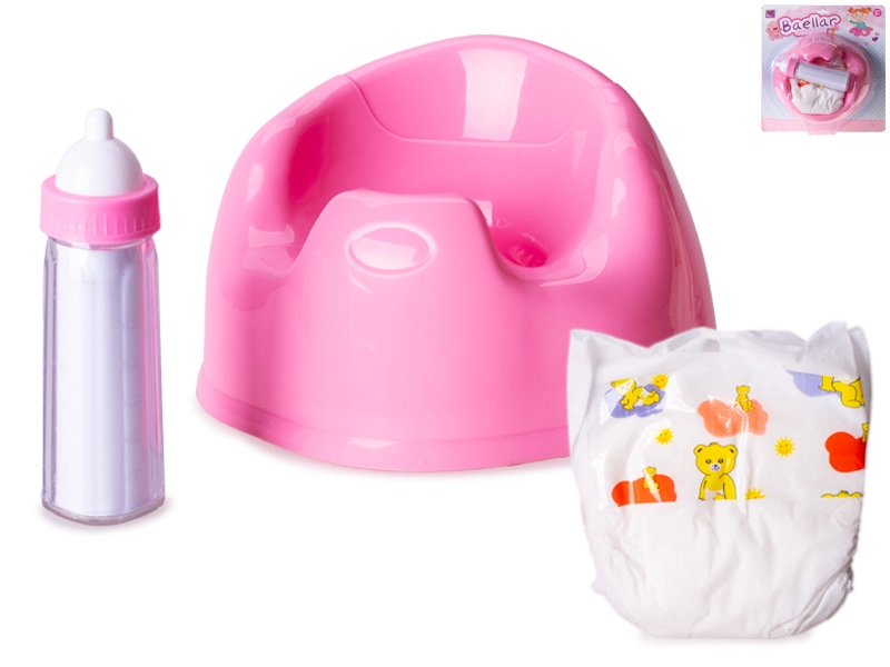 - Echipare completă: oliță, sticluță pentru pudră pentru copii și scutec pentru îngrijire realistă.