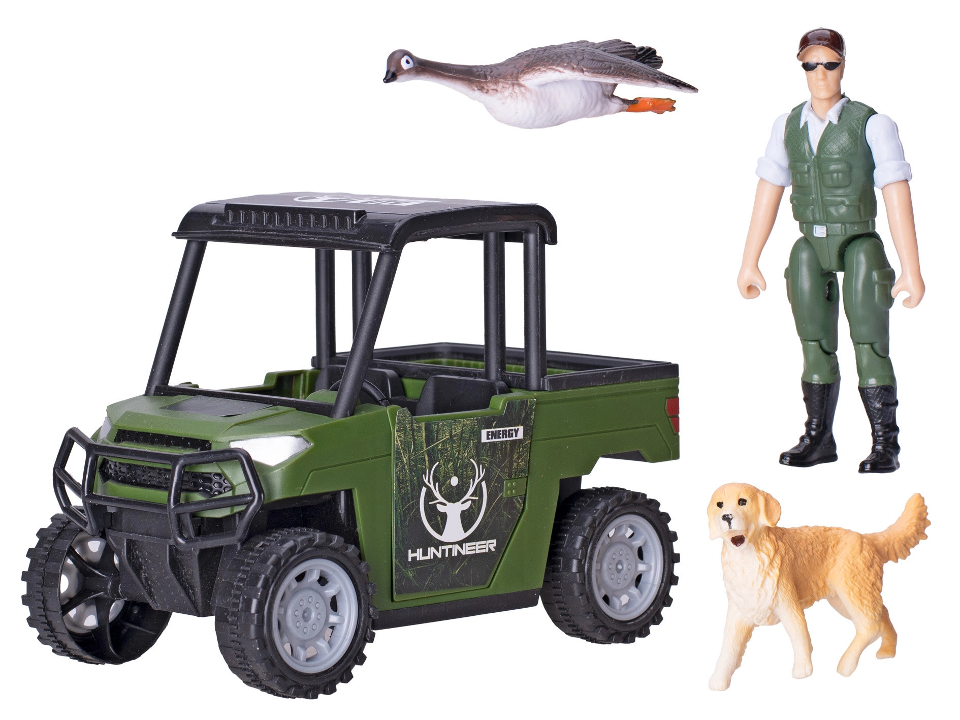 - Set grozav pentru jocuri pline de acțiune – mașină, vânător, câine și gâscă într-un singur pachet.