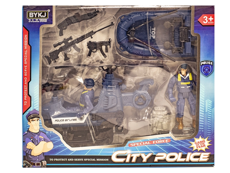 - Elicopter, barcă, figurine de polițiști și accesorii