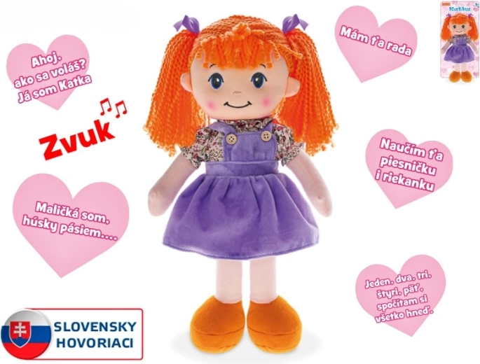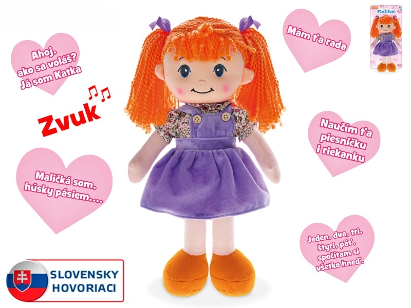 Păpușa Katka îi va fermeca pe copii cu părul ei roșcat și expresia drăgălașă. Datorită execuției din pluș fin, este plăcută la atingere și sigură pentru îmbrățișările copiilor încă din primele zile. Prin apăsarea burticii începe să vorbească și să cânte în limba slovacă – poezii, cântecele și fraze prietenoase care sprijină dezvoltarea abilităților lingvistice și percepția ritmului și a sunetelor.