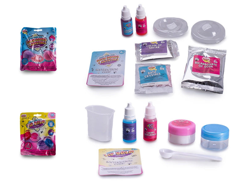 În pachet găsiți un set complet de ingrediente și ustensile pentru realizarea unui balsam de buze sau a unei bile efervescente de baie. Instrucțiunile sunt concepute astfel încât să fie sigure și ușor de înțeles pentru copiii de la 8 ani și, în același timp, să dezvolte îndemânarea manuală, răbdarea și atenția la detalii.