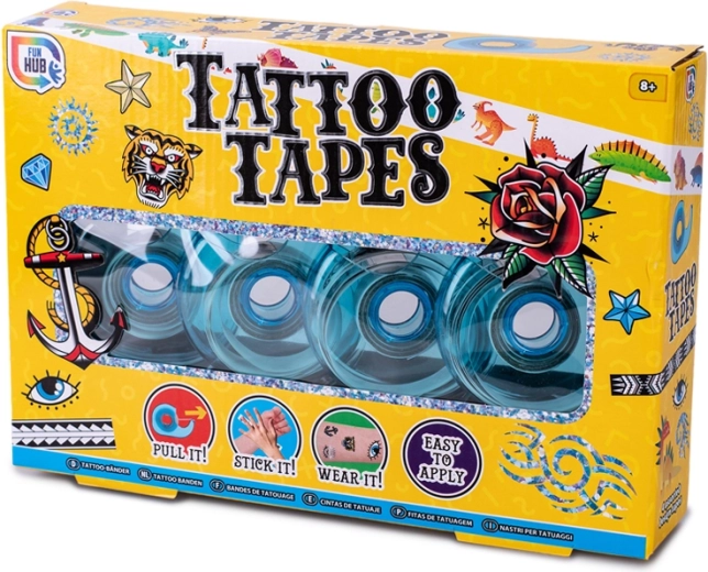 Descoperiți un set distractiv de patru benzi adezive cu care copiii pot crea ușor tatuaje temporare pe piele. Benzile sunt sigure pentru pielea sensibilă a copiilor, se aplică și se îndepărtează ușor și oferă diverse motive pentru un stil creativ propriu. Ideale pentru copiii de la 8 ani, acasă, în călătorii sau ca cadou original.