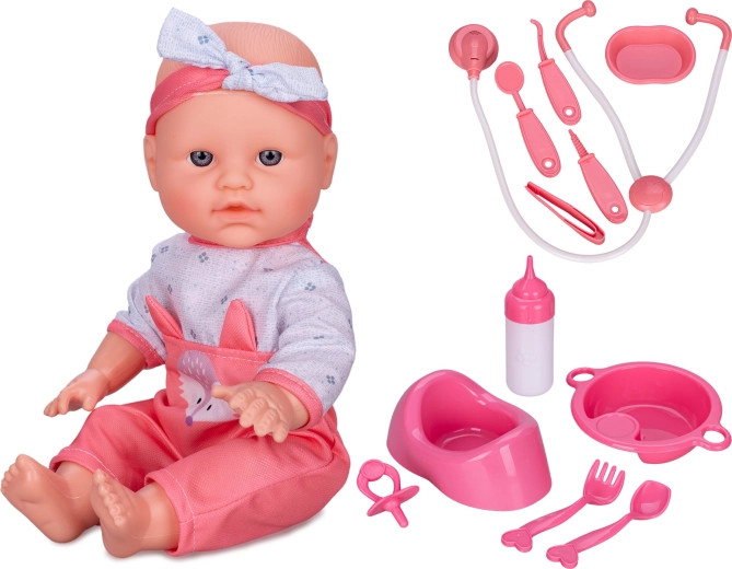 Pachetul conține diferite accesorii pentru îngrijire, care le permit copiilor să hrănească, să schimbe și să aibă grijă de păpușă ca de un bebeluș adevărat. Execuția din plastic durabilă și dimensiunea compactă fac păpușa o jucărie grozavă atât acasă, cât și în călătorii.