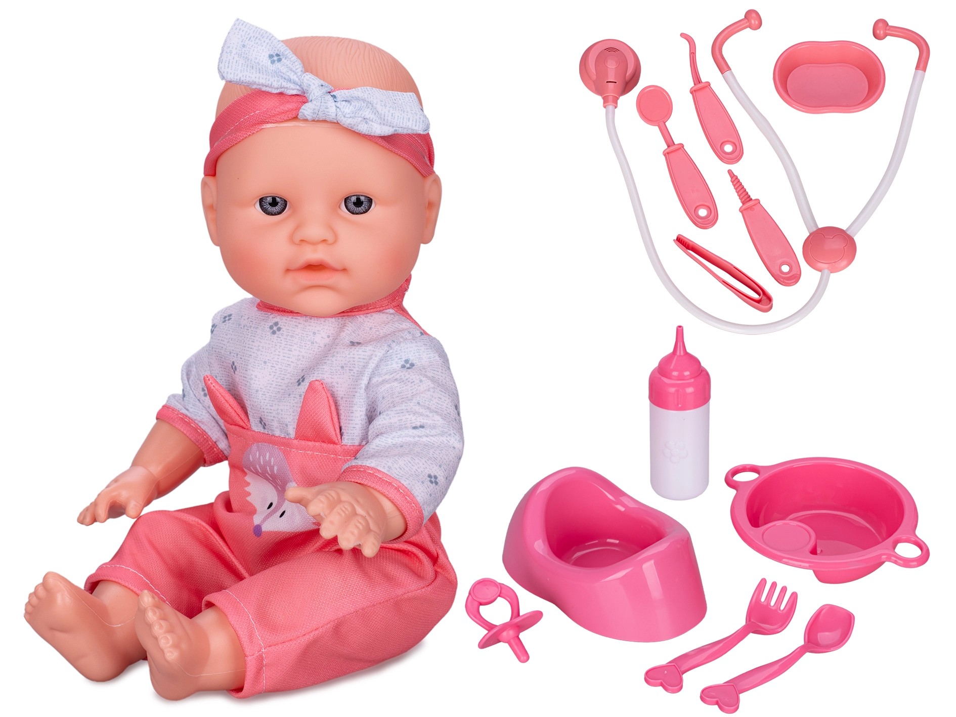 Păpușa interactivă adorabilă, cu dimensiunea de 30 cm, oferă copiilor o experiență de joc realistă. Are corp tare, poate face pipi și surprinde cu efecte sonore. Pachetul include accesorii pentru îngrijirea bebelușului, datorită cărora micii îngrijitori pot imita activitățile de zi cu zi. Păpușa este realizată din plastic rezistent, este potrivită pentru copii de la 3 ani și este alimentată de 5× baterii LR44, care sunt incluse în pachet.