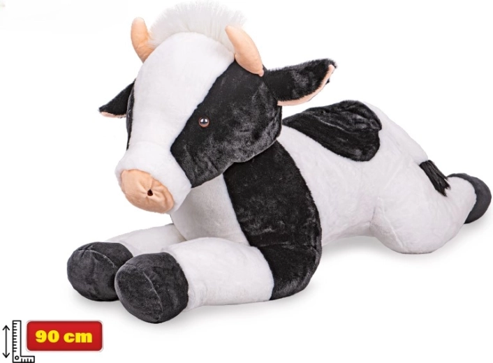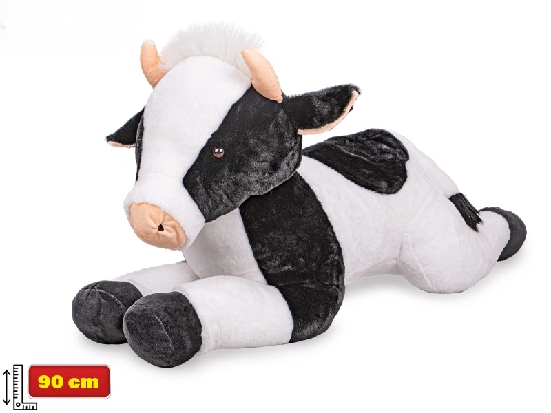 Adorabila vacă de pluș culcată, cu lungimea de 90 cm, este un companion grozav pentru copii și adulți. Oferă material moale și plăcut, design realist alb-negru și este potrivită de la naștere. Datorită execuției de calitate, este rezistentă, ușor de întreținut și poate servi și ca decor stilat pentru camera copilului.