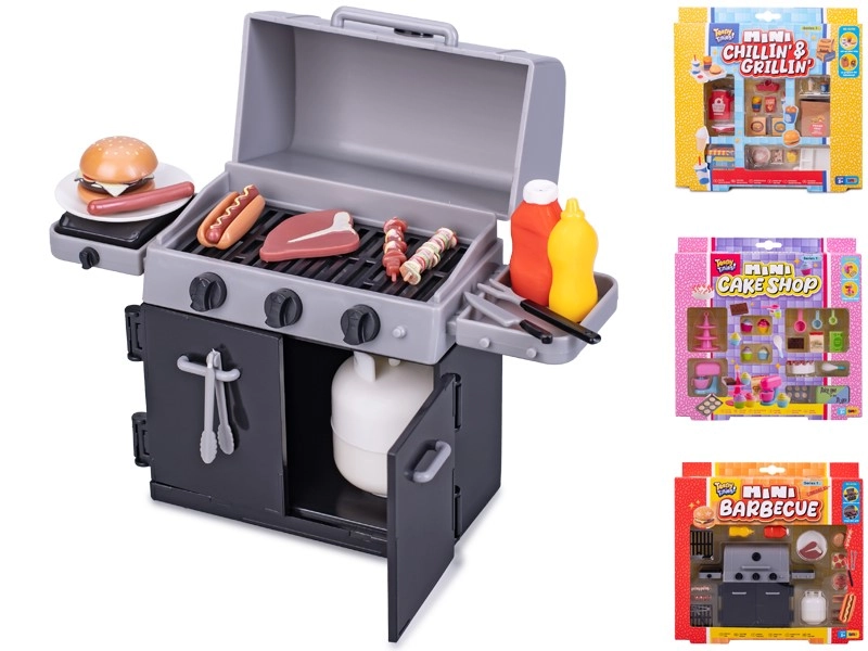 Setul distractiv Teeny Tinies pentru micii maeștri bucătari oferă trei variante tematice – cofetărie, grătar și BBQ. Copiii de la 5 ani se vor bucura de jocuri de rol realiste de servire a gustărilor, dezvoltând creativitatea, imaginația și motricitatea fină. Dimensiunile compacte și plasticul rezistent asigură transport ușor și durată de viață îndelungată.