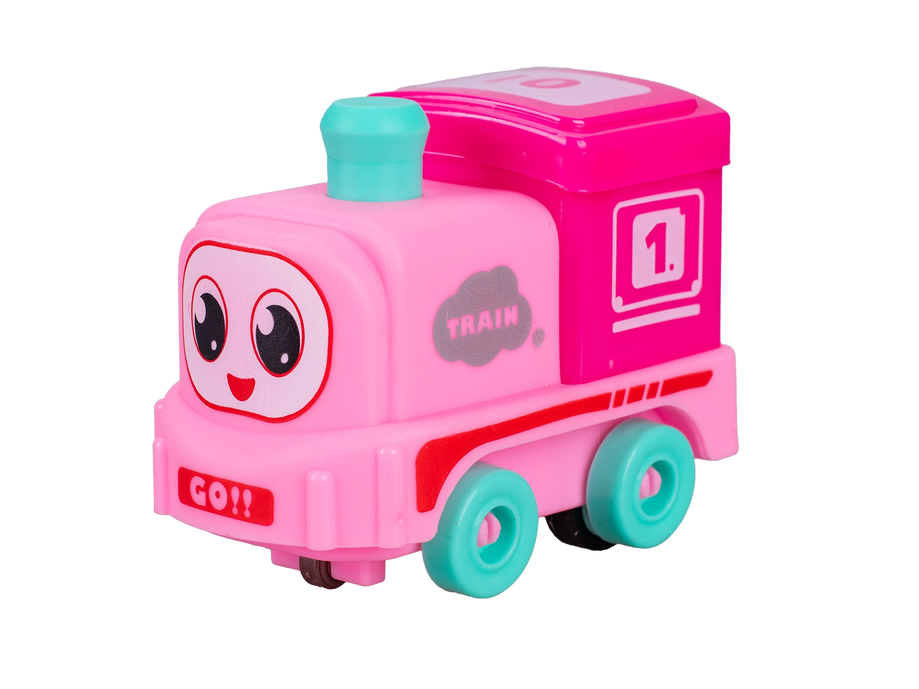 Jucăria este realizată din plastic ușor, rezistent și sigur, cu margini netede și rotunjite, pentru o joacă confortabilă și în siguranță. Este disponibilă în patru variante de culoare – albastru, roz, verde și galben – astfel încât poți alege cu ușurință culoarea preferată a copilului. Trenulețul este gata de utilizare imediat după despachetare, deoarece 2× baterii LR41 sunt incluse în pachet.