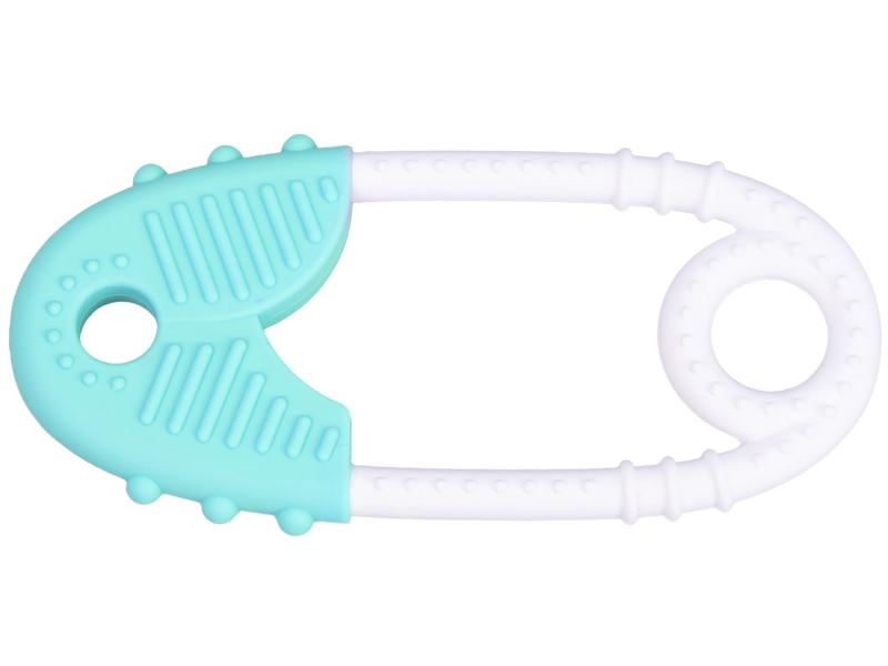 Jucăria practică din silicon pentru dentiție, în formă de ac de siguranță, pentru bebeluși încă de la naștere, aduce ușurare gingiilor sensibile și susține dezvoltarea motricității fine. Datorită formei ușoare și ergonomice, poate fi apucată cu ușurință chiar și de cele mai mici mânuțe, în timp ce suprafața texturată masează plăcut gingiile. Fabricată din silicon sigur și flexibil, se curăță ușor și este disponibilă în culorile roz, negru și verde.