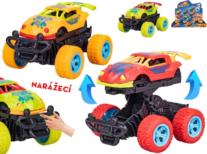 Mașinuța de impact Roadblasters, cu lungimea de 9 cm, oferă copiilor distracție dinamică și dezvoltarea motricității. Datorită mecanismului cu volant, după tensionare pornește înainte, iar la impact se întoarce automat înapoi. Construcția robustă din plastic asigură durabilitate și o viață lungă a produsului. Sunt disponibile 2 tipuri de caroserie și 3 culori intense.