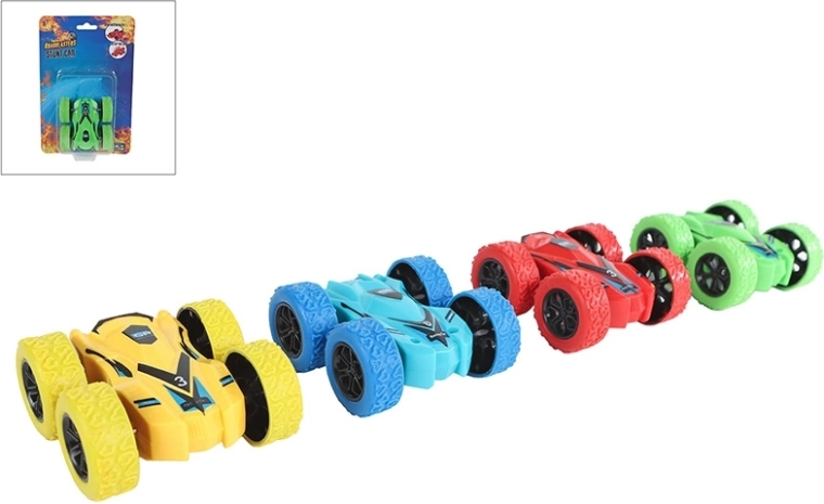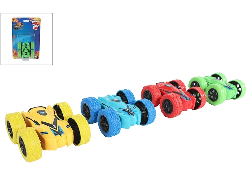 Bucură-te de adrenalină cu vehiculul cascador miniatural, care face salturi spectaculoase și rotații la 180°. Mecanismul cu inerție asigură manevrare ușoară – doar trage mașina înapoi și dă-i drumul. Datorită finisajului de calitate din plastic rezistent, face față manevrelor mai solicitante, rămânând în același timp ușoară și portabilă.