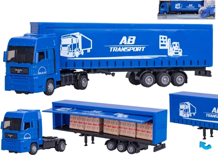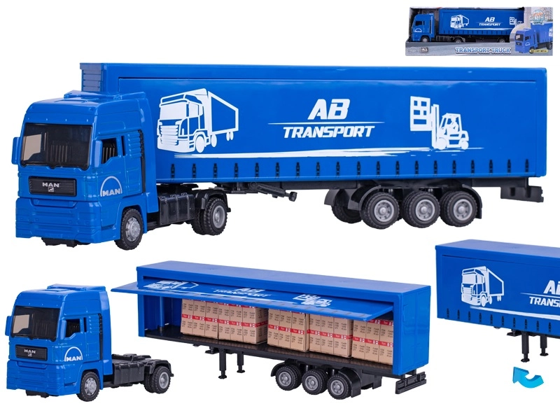 Cabina și remorca proiectate în detaliu oferă o experiență autentică de condus și fac din acest model un cadou ideal pentru micii iubitori ai mijloacelor de transport. Ambalajul în cutie compact va bucura la fiecare ocazie.