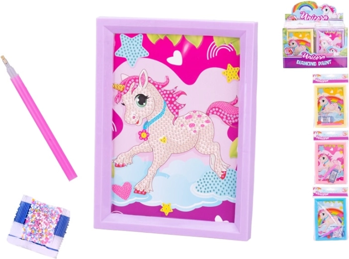 Creează-ți propria imagine sclipitoare cu motiv unicorn datorită acestui set creativ cu ramă de 18,5 × 14 cm. Conține pietricele colorate strălucitoare, imagine pretipărită și aplicator pentru lipire ușoară. Susține motricitatea fină, răbdarea și creativitatea copiilor de la 3 ani.