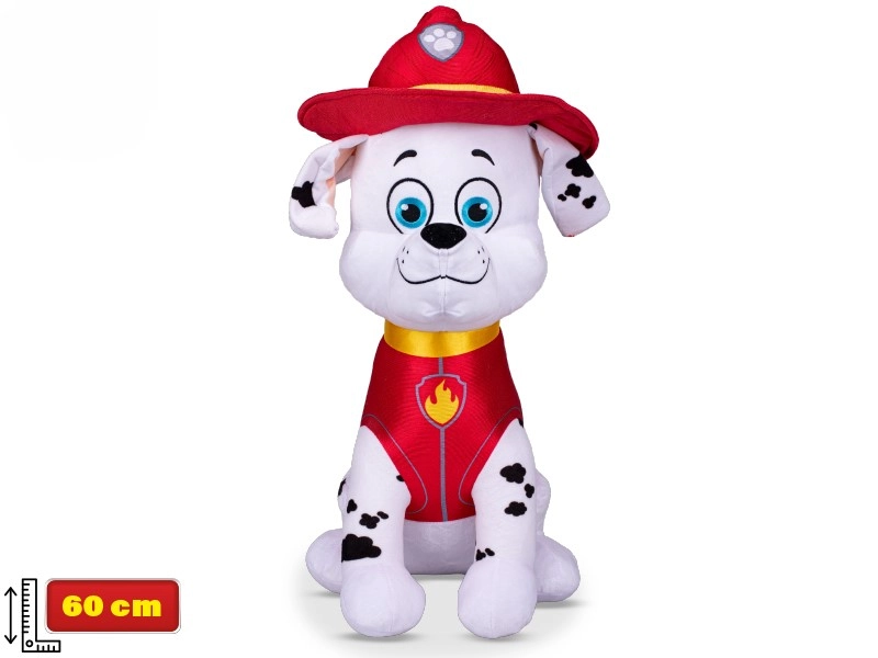 Adorabilul câine de pluș Marshall din serialul îndrăgit PATRULA CĂȚELUȘILOR îi va încânta pe toți micii fani. Datorită dimensiunii de 60 cm, materialului de pluș moale și poziției așezate, este ideal pentru joacă, alintat și ca decorațiune stilată în camera copilului. Detaliile fidele ale uniformei și căștii de pompier și licența oficială garantează o execuție de calitate. Potrivit încă de la naștere.