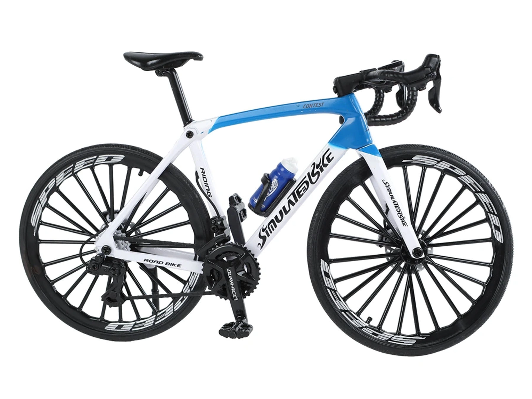 Model metalic de bicicletă de curse, realizat cu atenție la detalii, cu lungimea de 20,5 cm, va încânta atât copiii, cât și colecționarii. Oferă execuție precisă, material de calitate și detalii realiste pentru o experiență autentică a ciclismului.