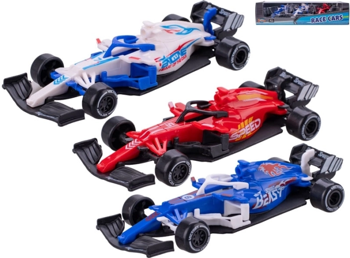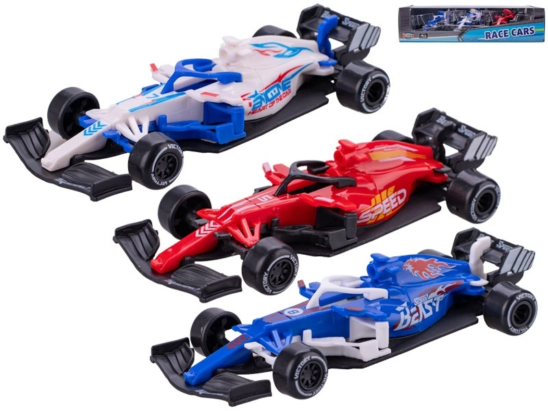 Un set stilat cu trei modele de monoposturi de curse îi va încânta atât pe micii piloți, cât și pe colecționari. Fiecare model, cu o lungime de 12,5 cm, are roți cu rulare liberă pentru o deplasare lină, este realizat din metal rezistent cu accesorii din plastic și impresionează prin culori atrăgătoare. Ambalate într-o cutie transparentă. Potrivite pentru copii de la 3 ani.