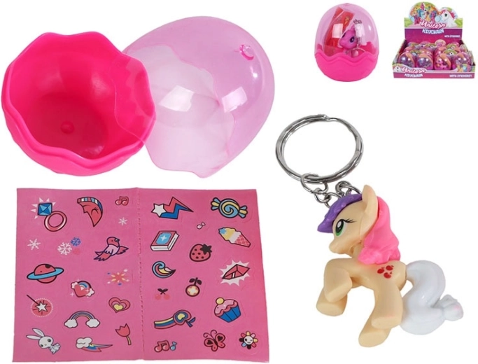 Un breloc drăguț în formă de unicorn îi va încânta pe micii și marii fani ai ființelor magice. Are dimensiune compactă de 5 cm, este realizat din plastic rezistent și vine într-un ou cu autocolante pentru și mai multă distracție. Sunt disponibile șase variante de culoare, astfel încât fiecare își poate găsi favoritului. Ideal ca mic cadou sau accesoriu de colecție pentru copiii de la 3 ani.